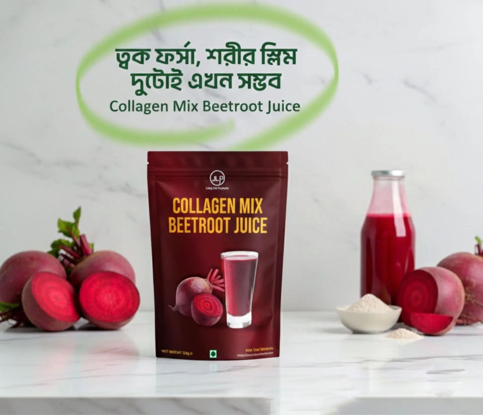 ত্বক ফ্রেশ, শরীর স্লিম—দুটোই এখন সহজে সম্ভব Collagen Mix Beetroot Juice এর সাথে। এটি একটি বিশেষ পুষ্টিকর ড্রিংক যা বিটরুটের প্রাকৃতিক উপাদান এবং কোলাজেনের শক্তিশালী সমন্বয়ে তৈরি, যা শরীরকে ভেতর থেকে পুষ্টি দেয় এবং ত্বকের স্বাভাবিক উজ্জ্বলতা বজায় রাখতে সাহায্য করে।
